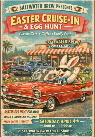The First Saturday of Every Month- in Silverhill, AL, at the Saltwater Brew Coffee Shop they hold a monthly Cruise-In!! It starts at 8am- with an award for the coffee shop pick- door prizes- music-